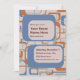 O padrão geométrico retro de quadrados modernos de meados do século fará um convite agradável para vários tipos de celebrações, incluindo uma festa de aniversário, festa de despedida de solteira, festa de aniversário, evento de arrecadação de fundos, casamento retrô ou outros eventos festivos. Personalize todo o texto, organize e redimensione se necessário, e se não precisar de um campo, basta excluí-lo. Adicione mais texto no verso, se desejar. Divirta-se na festa!