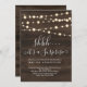 Luzes de corda em um fundo de madeira rústica complementadas por bela caligrafia.