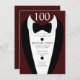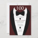Festa de aniversário Negra Tuxedo Burgundy 100ª Convidar Design - Cortesia de https://www.etsy.com/shop/teabreakart