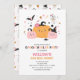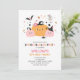 Boo! Aproveite este belo convite de aniversário de Halloween rosa! Este convite é a forma perfeita de convidar convidados para o seu Halloween ou festa de aniversário. Ele apresenta 3 abóboras, um fantasma, morcego, aranha, e mais com tipografia rosa e laranja.