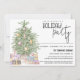 Este belo convite para o Feriado de Natal apresenta aquarelas árvores de Natal e presentes de Natal embrulhados com fontes de sans serif e tipografia decorativa divertidas para combinar com a ocasião. Este convite é a escolha perfeita para qualquer pessoa que esteja hospedando as festividades extravagantes divertidas e empacotadas à mão, tanto para crianças quanto para adultos! Você pode personalizar facilmente o convite com o texto como um download digital e enviá-lo eletronicamente e compartilhá-lo com seus convidados através de mensagem de texto, email ou mídia social. Ou você também pode optar por enviar/postar o convite referente aos detalhes de sua festa de Natal para seus convidados. Ou você pode receber ambos — convite impresso e receber o convite em formato digital como um download instantâneo. Por favor, note: a frase "Festa de Natal" e a árvore de Natal com trabalho de arte gráfico de presentes decorados e elementos e a linha não pode ser alterada, excluída ou movida. Eles estão consertados.