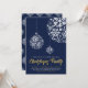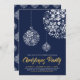 Comemore a temporada com este convite de festas de Férias. Este design apresenta lindos ornamentos de bola de neve com um tema de cor ouro e marinho. Esta modelo de design será perfeita para uma festa de Natal, festa de Natal, festa corporativa ou festa de cocktail.