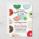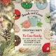 Uma coleção mimática de rosquinhas de Natal e uma xícara de cacau quente armam este convite para festas de férias. Possui cinta de Papai noel, luzes de Natal, flocos de neve e cores festivas, marshmallow, e borrachas