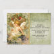 Convites de anjo de Natal personalizados - design de anjo de Natal clássico, com um cherub loiro de cabelos encaracolado em frágil tecido de ouro. Ela está cercada por flores roxas e azuis e acima dela estão bagas ocas e folhas com uma estrela dourada nas costas. 'Por favor, junte-se à nossa Festa Anual de Natal' está impresso em letras verdes correspondentes aos detalhes da festa de Natal abaixo em preto sobre o fundo de papel verde velho e divisor de luz dourada. O outro lado é o papel antigo e antigo. Altere a cor do texto personalizado, o estilo da fonte ou o texto, se desejar. A redação atual é para um convite de festas de Natal.