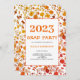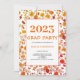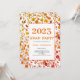 Convite à festa de formatura de 2023 com padrão floral retrorreflector. Laranja floral e texto. Fácil de alterar as informações da página do produto.