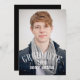 Cartão de Convite para Festa de formatura de Fotografia com Tipografia Retroativa para formandos machos com um design de camada simples. Elke Clarke © Personalize com suas informações de formando selecionando personalizá-las ou use os prompts do menu modelo. Troque a foto de exemplo por sua. Design flexível para permitir a escolha de vários tamanhos diferentes de placas, dependendo da sua foto do seu formando.