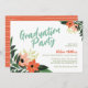 Design de convite de festa de formatura moderno da Tendy com uma ousada borda floral tropical e letra de script de caligrafia na moda. Personalize o design com os detalhes da sua formando com espaço no vazio na parte traseira para adicionar fotos ou texto adicional. Use as ferramentas de design para personalizar todas as fontes de texto e cores para criar uma única de um tipo de design.