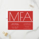 Este é um cartão postal de convite para festas de formatura AMF. Este convite minimalista é vermelho e branco. Todas as palavras e ambas as cores podem ser personalizadas. Grau MFA Festa de formatura Vermelha Convite Feriado Design | ©Melissa Patton