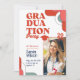 Mande o seu filho da flor interior e jogue uma rosquinha para celebrar a sua formatura! Este convite inspirado na história apresenta um espaço fotográfico de canto arredondado, perfeito para mostrar os fotos do seu mais velho. Com uma paleta vibrante de cores vermelhas, beges e do estilo 70s, além de fontes entalhadas e uma ilustração de margarida lúdica, este convite certamente define o tom para uma festa de formatura distante.
