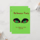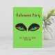 Os olhos vampiros são assustadores. Verde brilhante para combinar os olhos com informações de RSVP de texto vermelho.