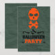 Crânio Assustador e Festa Crossbones Halloween Convite com uma ilustração brilhante do crânio laranja e dos ossos cruzados contra um fundo verde-escuro texturizado. Você pode mover/excluir/alterar a maioria dos elementos/fontes/fundo do design de acordo com sua escolha/preferências. Não se esqueça de escolher o tipo de papel ao solicitar seus convites!
