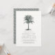O convite à festa de noivado do estilo Vintage Beach apresenta uma ilustração gravada da palmeira em verde-caçador negro, no topo dos seus detalhes de casamento em cinzas de carvão para uma aparência costeira chic. Cartões de convite de marfim esbranquiçados invertidos a um padrão tecido. Recomendamos a impressão deste estilo no papel tradicional do Laid para uma textura rica que complementa a aparência antiga deste convite de festa de noivado.