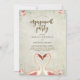 Um belo convite à festa de noivado floral tropical flamingo com um fundo de cinza angustiado trustico e um marinho de coordenação inverso. Fácil de editar ou excluir os campos de texto disponíveis para personalizar as informações com seus próprios detalhes para um convite personalizado e profissional. Muitos itens correspondentes nesta coleção quirky/boho. Por favor, visite meu compro para ver a faixa de cheios e criar um conjunto de itens usando este adorável design.