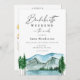 Convite para fim de semana de solteira na floresta com itinerário no verso. Com ilustração em aquarela de montanhas, árvore e um lago com acessórios de acampamento no verso. Personalize com seu texto. Clique em "clique para personalizar ainda mais" para alterar o estilo, tamanho ou cor da fonte e mover as caixas de texto.
