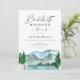 Convite para fim de semana de solteira nos bosques com itinerário no verso. Com ilustração em aquarela de montanhas, árvore e um lago com acessórios de acampamento no verso. Personalize com seu texto. Clique em "clique para personalizar ainda mais" para alterar o estilo, tamanho ou cor da fonte e mover as caixas de texto.