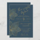 Defina o tom para uma elegante e íntima celebração de feriado com este belo convite para janto de ensaio. O design apresenta um fundo azul rico e profundo que evoca um senso de calor e festividade, perfeito para a estação. Graciosamente enfeitando as bordas, um delicado desenho de flores em ouro cambaleante adiciona um toque de sofisticação e luxo. Os elementos florais — sutis mas marcantes — criam um equilíbrio harmonioso, com curvas elegantes e detalhes intrincados que são eternos e modernos. O texto do convite está lindamente definido em um roteiro de ouro complementar, convidando convidados a se juntar à celebração do amor, riso e novos começos.