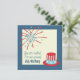 Divertido e encantador convite para fogos de julho com uma ousada borda azul escura, fogos de artifício vibrantes e um chapéu patriótico. Este design de excelente é uma escolha de excelente para a próxima festa do Dia da Independência. Fácil de personalizar, basta adicionar os detalhes do seu fabuloso encontro de 4 de julho nos campos fornecidos.