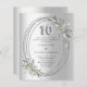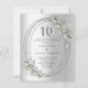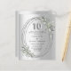 Um fundo de olhar mal prateado. Decorado com verde e quadro oval. Personalize e adicione um nome e detalhes. O número 10 é escrito com uma letra falsa no estilo do balão. 1 folha = 1 convite impresso de borda a borda.