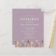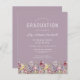 Uma bela borda floral de aquarela de flores silvestres decora a borda inferior deste convite de festa de formatura de vassouras. Personalize o texto branco em um fundo mauve, com o nome do formando em script de escrita manual; o ano escolar e de classe em sans serif; e os detalhes de data, local e RSVP em serif. A parte traseira da placa é molha sólida.