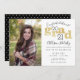 Este convite de formatura simples e moderno apresenta uma foto, um texto dourado e pode ser usado para uma faculdade ou formando segundo grau. Escolha entre várias opções de cor na parte traseira.