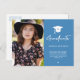 Gráfico clássico de tipografia branca e azul-tênue e gráfico de tendências que fazer um cartão-postal de anúncio do convite de festas de formando. ++++++++ Fácil de personalizar com a sua fotografia, detalhes e monograma / iniciais de nome em ambos os lados! ++++++++++++++++++++++++++ Se você precisa de uma cor específica, por favor, mite o designer pelo botão abaixo.