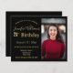 convite de festas elegante de fotografia aniversário de 21 anos preto de ouro