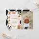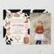 Convite Fotográfico de Aniversário da Rodeo Cowgirl Editável. Levante-se e comemore em estilo com este editado Convite de Aniversário da Garota Rodeo! Apresentando um tema divertido no ocidente com impressão de vaca, sotaques cor-de-rosa, botas de vaqueiro e gráficos — é perfeito para o dia especial da vovó. Personalize facilmente os detalhes usando o modelo editável. Ideal para festas de aniversário de rodeio, ocidentais ou nacionais!