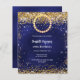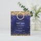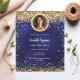 Para uma elegante festa de aniversário 40th (ou qualquer idade). Um fundo azul marinho, incolor. Decorado com confete de ouro falso. Personalize e adicione um nome e detalhes da parte. Adicione a sua foto no falso quadro de diamante de ouro. O nome é escrito com um script de estilo manuscrito. 1 folha = 1 convite impresso de borda a borda.