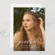 Este anúncio de graduação apresenta uma grande foto frontal de cheio com uma cobertura de script de caligrafia e uma segunda foto no verso, juntamente com seu convite para festa de formatura. Os elementos traseiros podem ser removidos clicando no botão para editar mais detalhes.