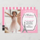 Celebre sua Festa de aniversário de Paris com nosso Convite de festas de Paris Rosa. Designs apresentam a torre do eiffel em um plano de fundo rosa-chic. Personalize estes convites de aniversário com a fotografia do seu filho. Este convite de aniversário para paris é perfeito para a sua pequena festa de paris primeira festa de aniversário, festa de aniversário glamour ou chá de fraldas paris.