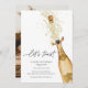 Convite para Festa de noivado de vamos. Projetado com uma bela garrafa de champanhe Dourada a aquarela. Itens correspondentes na nossa loja, Design do Partido Cava.