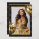 Torne a sua festa de aniversário da quinceañera ainda mais especial com este convite para fotos de aniversário Dourado e negro de luxo. Este convite tem uma bonito estrutura preta e dourada, com balões ricos que a fazem parecer realmente festiva e na moda. Você pode facilmente adicionar sua própria foto ao convite, e também há espaço no verso para escrever todos os detalhes importantes sobre seu evento de aniversário da quinceañera ou quaisquer ocasiões especiais.