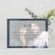 Esses convites de casamento modernos e minimalistas mostram sua própria foto cobrindo completamente o fundo. Uma camada branca contém todas as suas palavras de convite de casamento, bem como as suas iniciais, e o seu monograma também aparece no verso.