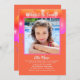 Convite de festas de adoção para uma jovem, adolescente ou bebê. Celebrar a adoção de uma filha com cartas cor-de-rosa e laranja brilhantes. Um design de balões festivos está atrás do grande molde fotográfico, com linhas de texto branco para personalizar. "Bem-vindos à família" no topo, com o nome dela debaixo da fotografia. Adicione informações e convite de festas no parágrafo modelo. Este design bonito cor-de-laranja e rosa também é fornecido como um download instantâneo para compartilhar online.