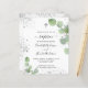 Para o batismo de 2 crianças. Um fundo branco decorado com verde de eucalipto e pó de cinza falso. Personalize e os nomes e detalhes da cerimônia infantil. Letras pretas coloridas. Sexo neutro. Fundo: fundo branco com poeira falsa brilhante.