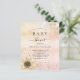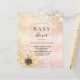 Um moderno, elegante e chá de fraldas. Um rosa de ouro e um fundo metálico cor-de-rosa, cor-de-rosa, fino, decorado com ouro falso e poeira reluzente prateada e um girassol rústico. Personalize e adicione um nome e detalhes da parte. Letras pretas coloridas.