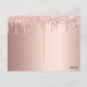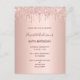 Um convite moderno, na moda e glamouroso para a festa de aniversário de uma mulher. Um fundo metálico rosa dourado falso com um brilho elegante rosa dourado, pintura gota-a-gota. O nome é escrito com um moderno e escuro, rosa dourado, escrito com letra de estilo manuscrito. Modelos para os detalhes da sua festa. Dica: Se você não quiser que pareça um cartão postal, clique em personalizar, vá para o verso e remova o divisor e o carimbo de posto.