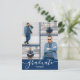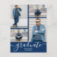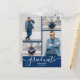 Adicione suas fotos favoritas a estes cartões postais de convite para festas de formatura com as palavras formando e classe de em caracteres quicos em um fundo de cor azul de marinho na frente e seus detalhes no verso. Mais designs e cores feitas em nossa loja.