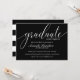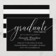 Parabéns pela sua graduação! Convide convidados com estes elegantes e modernos convites a preto, com "formando" em caligrafia manuscrita. Um elegante padrão preto e branco completa a placa no verso Para obter ajuda ou solicitação personalizada, entre em contato conosco através da loja ou escreva um email em citronelladesign@gmail.com O fundo preto pode ser facilmente alterado usando o botão "personalizá-lo"