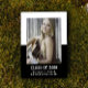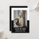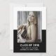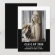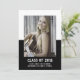 Anúncio de Graduação em Bloco de Cores Escolares com um design de modelo de fotografia de dois tons clássico e moderno a preto. Adicione uma foto e detalhes de graduação para personalizar. A cor de fundo no verso do convite pode ser alterada para complementar a foto ou para adicionar uma cor escolar.