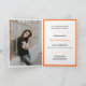 Aproveite um pouco de capricho com uma mistura de digitação neste anúncio de graduação e convite. A frente tem caixas para três fotos de mais velho junto com seu nome, escola e ano de aula. A dentro inclui espaço para os detalhes da cerimônia de início e um convite para uma festa depois, assim como uma grande foto. O verso inclui espaço para você colocar planos futuros para seu formando. Design disponível em vermelho, laranja, azul, verde, roxo, marrom, cinza prateada e preto. A design é facilmente alterada para corresponder às suas cores escolares. Produtos correspondentes disponíveis.