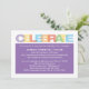 Convite moderno e minimalista. Excelente para formando de universidade, universidade, instituto, escola técnica ou segundo grau. Possui a palavra "Celebrar" em letras grandes em várias cores. Apanhar os olhos e design contemporâneo com um toque de elegância. Adicione a sua própria redação.