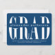 Grande, ousado, estilizado "formando" em envios brancos clássicos e nítidos em um fundo de cinza médio. Mostrado em marinho e branco, você pode personalizar facilmente a cor de fundo para corresponder ao seu esquema ou tema. O padrão do círculo de tendências se coordena atrás. Um convite ou um anúncio de festa de formatura único e moderno que é neutro em relação ao gênero e um alternativo excelente para fotos convida.