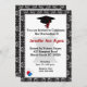 Convite para Graduação de Farmacêutico Personalizado com uma argamassa em segundo plano, comprimidos e boné de formatura. Adicionar os detalhes da festa de formatura
