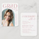 O anúncio simples de graduação em mini tamanho apresenta a tipografia moderna e a fotografia em forma de arco em rosa, elegante e divertido, Personalize-o com sua própria foto e informações de festas de formando.