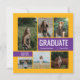 Cartão de anúncio de graduação de na moda e convite de festas contém seis fotos de mais velho com "FORMANDO" como um grande ponto focal. Personalize o texto personalizado moderno com seu nome de formando, escola e ano de aula. Esta design de placa dupla lateral inclui o texto do convite de festa de formatura na parte traseira. Personalize as cores da imagem e das caixas na frente e nas caixas no verso para combinar as cores da sua escola ou coordenar com a fotografia. Disponível nas combinações de cores escolares mais populares e comuns - verde/amarelo, vermelho/amarelo, creme/ouro, azul/amarelo, marinho/ouro, preto/dourado, preto/amarelo, roxo/amarelo, vermelho/prateado e vermelho/preto. Produtos correspondentes e outras cores disponíveis.