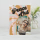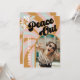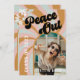 Convite para a graduação de fotos dos anos 70! Formando de paz, linhas irrisórias do sol em cores neutras em boho com flores ranchosas e as palavras "Peace Out" em letras retrógradas. Adicione a foto do seu formando na parte frontal e a informação da festa de formatura na parte traseira.