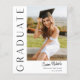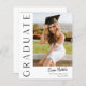 Este moderno e elegante convite para a graduação de fotos do orçamento do na moda apresenta uma foto vertical e um título com um nome de script personalizável e texto na frente. As costas têm um convite com os detalhes da festa. Uma forma excelente de mostrar seu formando. Clique no botão editar para personalizar este design.