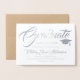 Tipografia de Script Artístico Anúncio de Cartão de Formandos de Foto Convite na orientação horizontal. Linda folha prateada em papel de cartão estilo kraft castanho, com o logotipo do ícone do boné de formatura da placa de mortarboard. Maravilhoso e clássico para qualquer formando macho ou fêmea. O moderno anúncio sofisticado de graduação é ideal para formandos de nível universitário ou segundos graus de rico. Design de Elegante Clássico Formal com escrevendo de fonte de script estático. Opção barata e excelente em vez de anúncios escolares oficiais. A graduação formal a tradicional e clássica convida a qualquer pessoa, seja ela escola de formando, escola de comércio, enfermagem, medicina ou faculdade de direito.