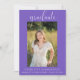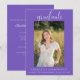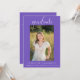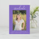 Este elegante convite fotográfico será a forma perfeita de anunciar a sua festa de formatura. Este convite apresenta um fundo roxo. Adicione uma foto e personalize o texto na frente e atrás para incluir todos os detalhes da sua festa de formatura. Este convite está disponível em diversas cores.